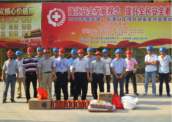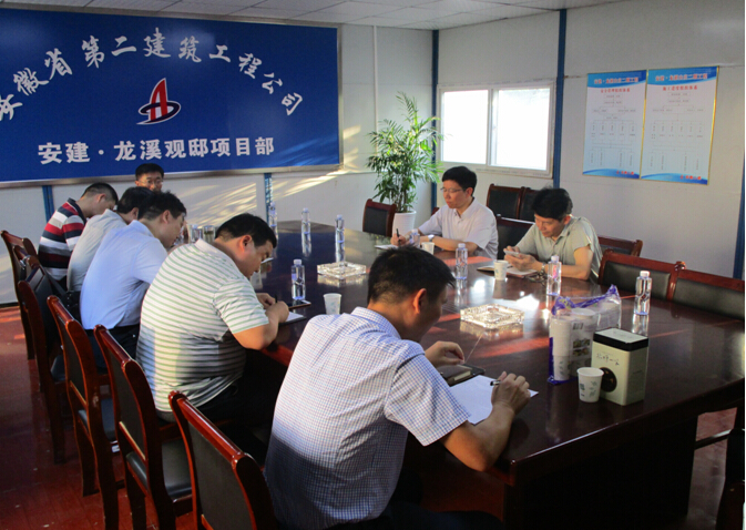 在隨后召開的現(xiàn)場工作會上,王厚良副總經(jīng)理對安建·龍溪山莊工程質(zhì)量和目前所取得的成績給予了充分肯定,對項目近期工作提出四點要求,一是要高標(biāo)準、嚴要求,抓好現(xiàn)場安全文明施工和標(biāo)準化施工,提高安徽建工集團在當(dāng)?shù)氐挠绊懥?;二是要高度重視安全質(zhì)量,確保安全無事故,質(zhì)量無缺陷;三是要強化目標(biāo)責(zé)任制,充分調(diào)動全體員工的積極性;四是要加強人才培養(yǎng),對青年人,工作上要交真本領(lǐng),業(yè)務(wù)上要經(jīng)常開展技能培訓(xùn)。