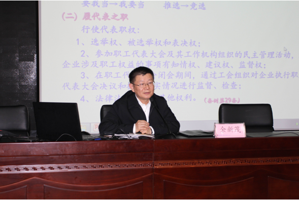 為提高集團公司職工代表參政議政的素質(zhì)和能力,2016年11月7日下午,公司組織14名職工代表參加集團公司在安建大廈三樓會議室舉辦的首屆職工代表培訓講座,講座特邀省總工會民主管理部部長余新茂授課。集團工會主席徐曉光、副主席吳曉伍、女工主任胡愛紅等集團機關(guān)及各子公司工會主席、集團職工代表、各基層工會主席等200余人參加了此次培訓講座。