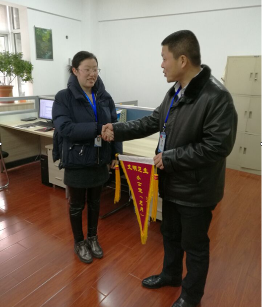 經考評小組公正嚴謹的檢查評比,人力資源部、保衛部獲得2017年元月份“文明衛生辦公室”榮譽稱號,黨委劉賢奇書記對獲得稱號的部門進行了授旗,并寄語“再接再勵不斷提高”。