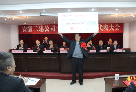 最后,黨委書記劉賢奇同志作了《轉(zhuǎn)變觀念 統(tǒng)一思想 增強(qiáng)信心 開拓進(jìn)取 為開創(chuàng)一流安徽二建新局面而努力奮斗》的總結(jié)講話。劉書記首先對2016年公司各項工作所取得的成績給予了充分肯定,對受表彰的先進(jìn)集體和個人表示了熱烈的祝賀,向辛勤工作在各個崗位上的全體二建員工致以誠摯的問候!劉書記強(qiáng)調(diào),二建的掘起依賴全體二建人的共同努力,為此,提出幾點意見:一是以學(xué)習(xí)黨的十八屆六中全會為主線,進(jìn)一步加強(qiáng)理論武裝。堅持以領(lǐng)導(dǎo)干部為重點抓好黨委中心組學(xué)習(xí),同時深入抓好全體黨員的經(jīng)常性學(xué)習(xí)教育活動;二是以弘揚求真務(wù)實之風(fēng)為依托,進(jìn)一步改進(jìn)工作作風(fēng)。工作要力求精益求精,做出品牌、做出特色,敢于批評和自我批評,虛心接受各方面意見,敢于沖破束縛我們手腳的各種框框和體制障礙,實現(xiàn)政治、經(jīng)濟(jì)、精神文明的協(xié)調(diào)發(fā)展。三是以建設(shè)“四好”領(lǐng)導(dǎo)班子為重點,進(jìn)一步加強(qiáng)領(lǐng)導(dǎo)班子和黨員隊伍建設(shè)。堅持把企業(yè)經(jīng)營業(yè)績考核結(jié)果作為評價開展“四好”班子建設(shè)的重要依據(jù),堅持定量考核與定性評價相結(jié)合,努力達(dá)到上級黨委、領(lǐng)導(dǎo)班子自身和職工群眾“三滿意”的效果。四是以增強(qiáng)企業(yè)凝聚力、向心力為目標(biāo),進(jìn)一步做好職工思想政治工作和企業(yè)文化建設(shè)。五是以弘揚企業(yè)廉潔文化的抓手,進(jìn)一步穩(wěn)固企業(yè)反腐倡廉體系。要求公司各級管理人員要貫徹落實好“一崗雙責(zé)”,修訂完善黨內(nèi)各項考核制度,形成用制度管人、用制度管事、用制度管權(quán)的工作格局。六是以創(chuàng)建和諧企業(yè)為載體,進(jìn)一步做好群團(tuán)工作。按照黨建帶群團(tuán)組織建設(shè)的要求,按照總攬全局、協(xié)調(diào)各方的原則,切實發(fā)揮好公司黨委領(lǐng)導(dǎo)核心和政治核心作用。讓全體二建人在集團(tuán)和公司兩級黨政班子的堅強(qiáng)領(lǐng)導(dǎo)下,上下同心,精誠團(tuán)結(jié),以高度的時代使命感和政治責(zé)任感,拼博進(jìn)取,為開創(chuàng)安徽二建改革發(fā)展新局面、實現(xiàn)安徽二建宏偉目標(biāo)而不懈奮斗!