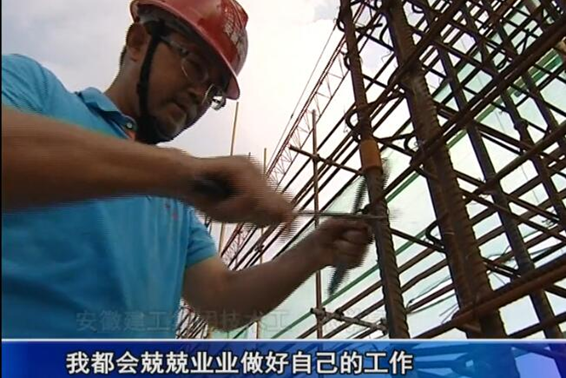在商務(wù)樓十四層梁柱鋼筋綁扎作業(yè)施工現(xiàn)場,項(xiàng)目部鋼筋班組工人張學(xué)亮接受了電視臺的采訪,他向記者重點(diǎn)介紹了項(xiàng)目工程目前的施工進(jìn)展情況、工作進(jìn)度節(jié)點(diǎn)安排、夏季防暑降溫工作安排和平時(shí)在工作中遇到的施工工藝上的重難點(diǎn)問題所做出的積極努力。