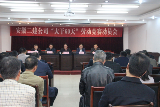 2017年已漸入歲末。為更好地全面完成年初公司既定各項經濟技術目標任務,在項目上掀起大干熱潮,安徽二建公司于11月6日下午,在原辦公樓三樓會議室召開“大干60天”勞動競賽動員會。公司領導及機關職能部門負責人、所屬各基層單位黨政一把手、公司在建20個自營項目負責人等60余人參加動員會。