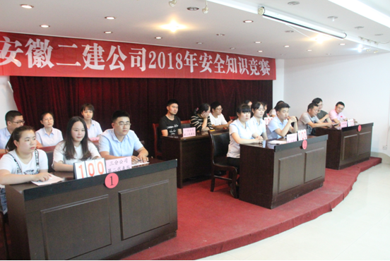 6月8日下午,安徽二建公司2018年安全知識競賽在公司原三樓會議室舉行。工會副主席蒯家江,安全總監(jiān)、安全管理部主任曹建,技術(shù)質(zhì)量部副主任梅紅擔(dān)任評委。各分公司領(lǐng)隊(duì)、安全科負(fù)責(zé)人以及各參賽代表隊(duì)參加活動。