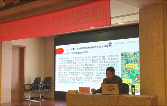 此次培訓(xùn)內(nèi)容豐富,形式多樣,針對性較強,公司總經(jīng)理陸勤斌,工程管理部副主任丁光啟、物資設(shè)備部主任史曉梅、三分公司副經(jīng)理劉素平、機械分公司副經(jīng)理石巢兵就關(guān)于項目管理與創(chuàng)新、大型機械設(shè)備管理、三位一體管控體系的應(yīng)用,項目成本管理、物資設(shè)備管理等為學(xué)員進行系統(tǒng)的培訓(xùn),公司還特別邀請了安徽建工集團控股有限公司安全監(jiān)察局主管王忠東講授安全管理與標(biāo)準(zhǔn)化建設(shè)相關(guān)方面的知識,并結(jié)合真實案例,給學(xué)員分析項目事故發(fā)生原因,教育大家防患于未然,提高預(yù)防事故的意識和能力。鼓勵員工帶著問題學(xué)習(xí),培養(yǎng)職工的學(xué)習(xí)習(xí)慣,提高學(xué)習(xí)能力,為二建公司培養(yǎng)出一支技術(shù)過硬、勇于創(chuàng)新的項目管理隊伍。