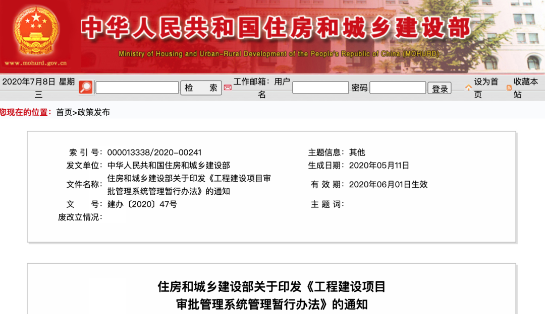 近日,住房和城鄉建設部印發《工程建設項目審批管理系統管理暫行辦法》。