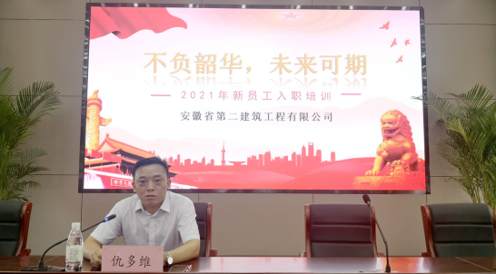 為幫助新員工盡快了解公司的發(fā)展、制度及企業(yè)文化,熟悉相關(guān)崗位的工作要求,強(qiáng)化新員工的責(zé)任意識(shí),增進(jìn)團(tuán)隊(duì)凝聚力。7月9日,安徽二建新員工入職培訓(xùn)在公司新會(huì)議室舉行,共80余人參加培訓(xùn)。