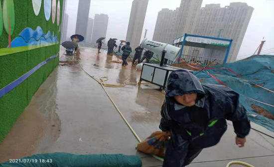 7月20日,河南省鞏義市氣象臺(tái)先后發(fā)布暴雨紅色預(yù)警信號(hào)、雷電黃色預(yù)警信號(hào),此時(shí)鞏義市已連續(xù)降雨48小時(shí)。所處?kù)柫x市的安徽二建四分公司紫薇苑項(xiàng)目部立即啟動(dòng)防汛應(yīng)急預(yù)案,上下“總動(dòng)員”,第一時(shí)間將已備好的防汛物資運(yùn)送到現(xiàn)場(chǎng),全力開(kāi)展防汛排澇工作,打響2021年鞏義項(xiàng)目防汛第一槍。