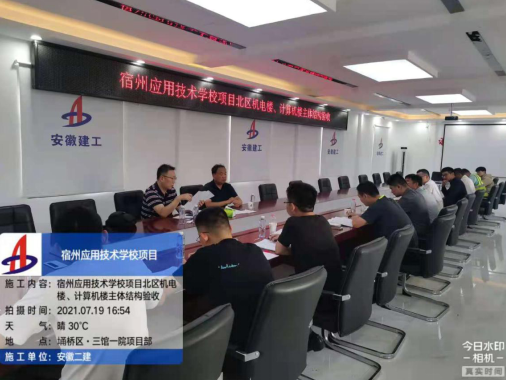 7月19日,一分公司承建的宿州應(yīng)用技術(shù)學(xué)校項目北區(qū)機(jī)電樓及計算機(jī)樓工程順利通過主體結(jié)構(gòu)驗收,兩棟單體總建筑面積23740平方米。