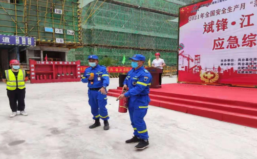 為積極響應公司深入開展“落實安全責任,推動安全發展”為主題的“安全生產月”活動,進一步加強施工現場作業人員的消防安全意識,有效提高消防逃生應急救援能力。6月10日上午,二分公司鳳臺斌峰江山印項目開展應急綜合演練現場觀摩會。