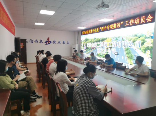 會上傳達學習了集團及公司“違規決策、違規投資、違規擔保、違規招投標”專項整治工作方案。制定了分公司“四個專項整治”工作方案,成立了分公司“四個專項整治”工作領導小組,并對集中開展“四個專項整治”工作進行了動員部署。