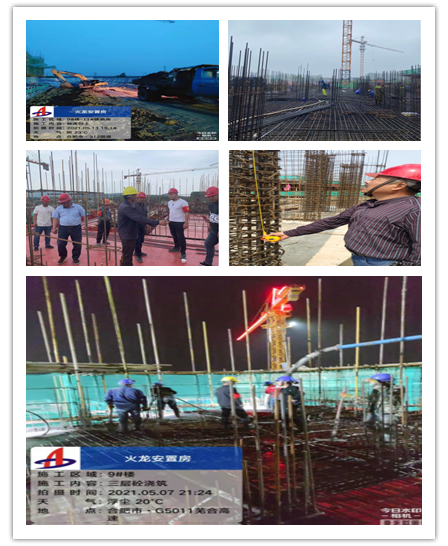 截至5月15日,勞動(dòng)競(jìng)賽已過(guò)去20天,項(xiàng)目部克服現(xiàn)場(chǎng)只有一條公用主干道澆筑混凝土的不利因素,全力沖擊既定目標(biāo)。目前1#樓CFG樁基養(yǎng)護(hù)完成、2#樓CFG樁間土開(kāi)挖完成、3#樓CFG樁基檢測(cè)完成、6#樓負(fù)一層墻柱鋼筋綁扎完成、7#樓負(fù)一層頂梁板模板安裝完成、7-9之間地庫(kù)頂梁板混凝土澆筑完成、1-2之間地庫(kù)土方開(kāi)挖中、9#樓五層墻柱鋼筋綁扎、11#樓四層頂梁板混凝土澆筑。
