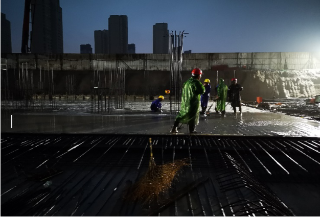 在確保工程質(zhì)量的同時,強化“搶進度即是增效益”的思想意識,全體管理人員不怕疲勞,連續(xù)作戰(zhàn),“白加黑,5+2”成為常態(tài)化。項目部克服不利天氣以及當?shù)丨h(huán)保檢查等影響,用不到11天的時間里完成了近1100平方米的地下室筏板施工,受到建設(shè)單位好評,為工程的后續(xù)建設(shè)創(chuàng)造了一個良好的開端。