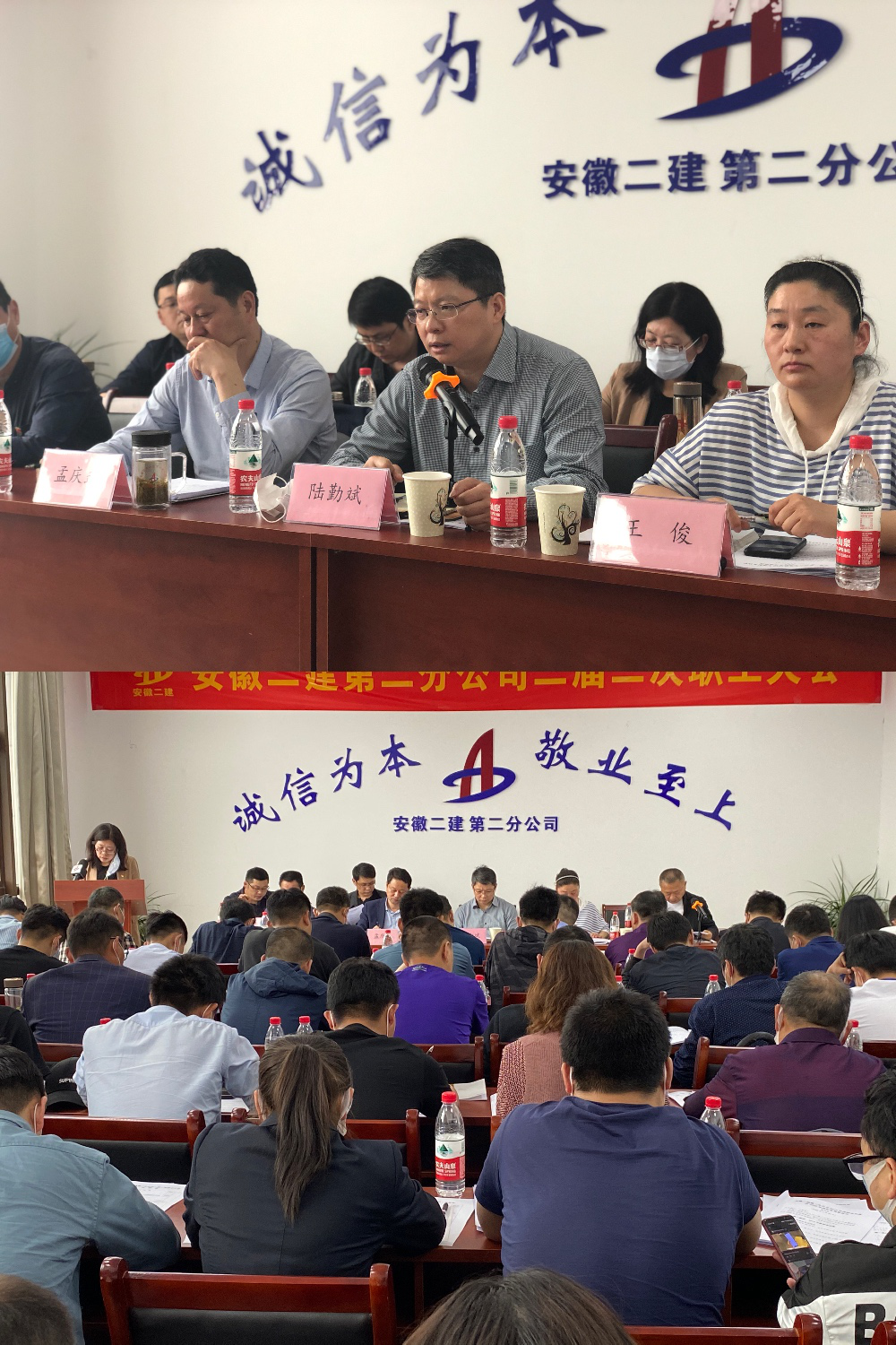 4月30日下午,二分公司召開了二屆二次職工大會。公司黨委副書記、總經理陸勤斌等相關人員蒞臨指導。會議由二分公司黨支部書記黃業云主持。