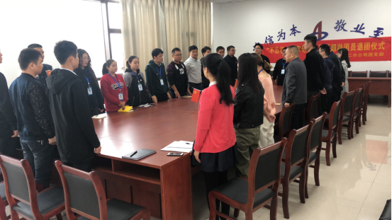 10月28日上午,二分公司團支部開展超齡團員退團儀式活動分公司超齡退團青年、團干團員20余人參加會議,黨支部書記黃業云應邀參加會議。伴隨著激情澎湃的團歌唱響,二分公司超齡團員退團儀式正式開始。