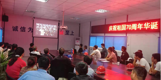 2019年10月1日上午8點,宣城利華世紀新城三期工程項目黨支部組織項目人員觀看祖國70周年慶典,各部門人員早早安排好工作,端坐在項目部會議室觀看慶典直播。