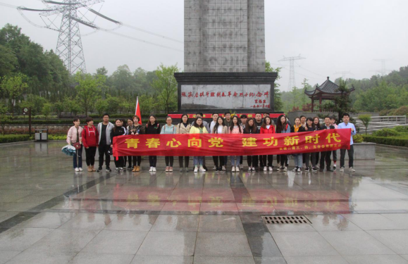429日上午,31名團員青年坐大巴來到了張店鄉無名革命烈士陵園。一行人自覺排列好隊伍,由兩名青年抬著花籃,莊重肅穆地敬獻于廣場中央的紀念碑前,全體人員鞠躬默哀。隨后,面對團旗,團員青年們舉起右手重溫入團誓詞,響亮而堅定的誓詞響徹廣場。乍暖還寒,細雨從天空落下,在同志們的發絲凝結成小水滴,也絲毫不影響大家的熱血和激情。