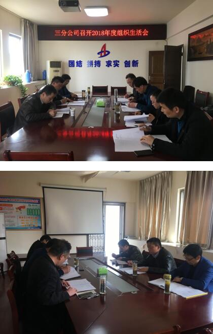3月28下午,三分公司在五樓會議室召開2018年度組織生活會,公司黨委書記、紀委書記仇多維、公司總工程師邱立龍,黨委工作部主任施用宏到會指導,會議由支部書記陳習武主持,分公司領導班子全員參會。