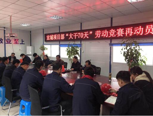 會上,項目部就此次競賽活動目前工程完成情況,后續工作安排,項目生產過程中所遇到的招標工作困難、塔吊安裝工作阻力大、政府環保部門因素導致攪拌站砼不能連續供應等情況進行了詳細匯報。針對匯報內容,李林首先給予充分肯定,對項目部提出的問題逐一記錄并進行解答。蒯家江強調:一是充分認識此次勞動競賽的重要性和緊迫性,深刻領會公司開展“大干70天”的重要意義,加強活動組織領導;二是高度重視安全質量工作;三是注重輿論導向,扎實做好宣傳工作;四是注重總結和考核兌現。最后,就團隊建設、人才培養和職業發展與項目管理人員進行交流。