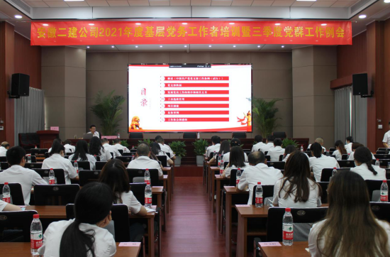為深入學習貫徹習近平新時代中國特色社會主義思想和黨的十九大及十九屆歷次全會精神,認真落實新時代黨的建設總要求,進一步提升公司黨務工作者的政治素質和業務能力,著力深化拓展基層黨組織標準化建設成效,著力增強黨支部創造力、凝聚力、戰斗力。7月16日,安徽二建公司在新會議室舉辦了2021年度基層黨務工作者培訓暨三季度黨群工作例會。公司黨群部門人員、基層各單位黨支部書記、團支部書記、綜合辦全體人員、項目支部班子成員等參加。