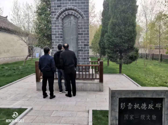 活動當日,項目青年走進紀念館大門,首先映入眼簾的是一尊英姿颯爽的彭雪楓騎馬雕像,四周被青翠的松柏掩映。在銅像的東側,屹立著一座彭雪楓德政碑。紀念館東側院落為新四軍第四師司令部舊址,包括作戰室、機要室、彭雪楓舊居等16間房屋,房屋內陳列著作戰地圖、電報機等一些革命文物;紀念館西側院落室內陳列有與彭雪楓同志相關的各類圖片資料和當時軍民用于生產、生活、抗戰的革命文物。