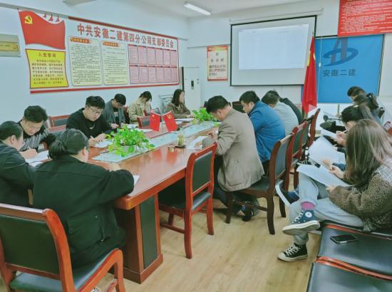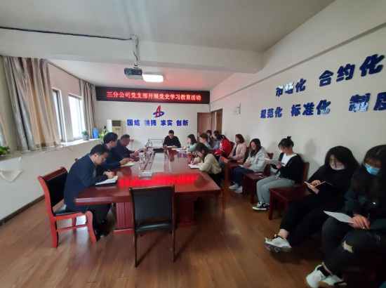 三分公司黨支部開展黨史學習教育活動,分公司機關全體人員參加,活動由支部書記陳習武主持。首先,陳習武帶領大家學習了二建黨發【2021】13號文《安徽二建公司黨委關于開展黨史學習教育的工作方案》,并就分公司黨支部的黨史學習教育活動做了詳細安排部署,要求全體黨員干部把思想和行動統一到集團、公司黨委的決策部署上來,高標準、高質量完成黨史學習教育各項任務,努力做到學史明理、學史增信、學史崇德、學史力行,以優異成績迎接建黨100周年。隨后,陳習武帶領大家上了一堂生動的黨史課?!皬纳虾J瘞扉T到嘉興南湖,一艘小小紅船承載著人民的重托、民族的希望,越過急流險灘,穿過驚濤駭浪,成為領航中國行穩致遠的巍巍巨輪?!薄Mㄟ^視頻和講解相結合,為大家敘述了從中國共產黨成立到建立新中國,28年間,黨召開了一次次重要會議。這些會議作出的決策,指引了中國革命的方向,推動了歷史進程,具有里程碑意義。大家紛紛表示,將從黨史中汲取智慧和力量,堅定信仰信念,進一步提高黨性修養,不忘初心,以實際行動發揮好黨員干部的模范帶頭作用,積極投入到干事創業中去,為分公司的發展添磚加瓦。