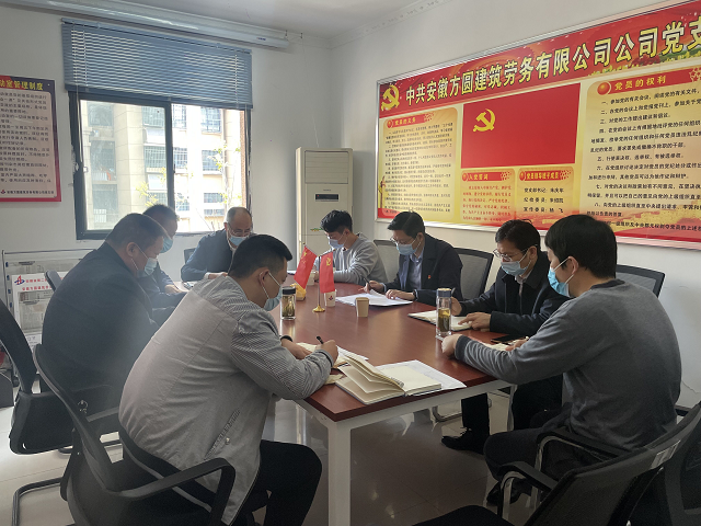 3月30日上午,方圓勞務(wù)公司黨支部在會議室召開2021年度組織生活會,公司黨委委員、副總經(jīng)理葉和永,黨委工作部主任施用宏、紀檢監(jiān)察室主管呂楊到會指導(dǎo),會議由方圓勞務(wù)公司黨支部書記朱慶年主持,全體黨員參會。