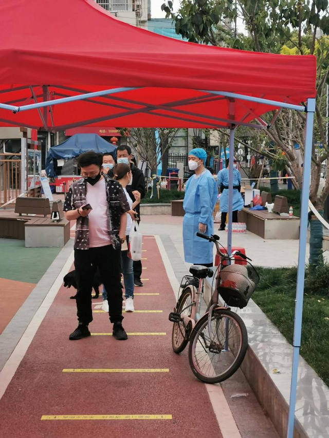 “雖然我們是預(yù)備黨員,但行動(dòng)上一直以正式黨員的標(biāo)準(zhǔn)嚴(yán)格要求自己”他們是這么說的,也是這么做的。服務(wù)期間,他們認(rèn)真維持現(xiàn)場(chǎng)秩序,引導(dǎo)小區(qū)人員有序排隊(duì),發(fā)放核酸檢測(cè)完成小卡片,給不方便的老人上門檢測(cè)登記等。