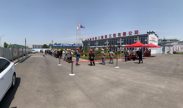 5月15日上午,第四分公司宿州三館一院一中心PPP項目部組織現場全體員工及工友進行核酸檢測。
