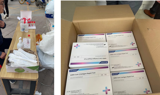 “您好,今天的抗原檢測開始了。”她一邊發(fā)放試劑盒,一邊叮囑居民相關(guān)注意事項(xiàng),這個是她今天的主要工作,從早上6點(diǎn)多和晚上8點(diǎn)開始,獨(dú)自承擔(dān)了兩棟樓的抗原試劑發(fā)放和回收工作,挨家挨戶敲響了住戶的家門,面對個別住戶說打擾了他們睡眠的些許抱怨,她始終面帶著微笑,耐心解釋和等待著。就這樣一家一戶的發(fā)放和最終收集檢測的試劑,晚上將近11點(diǎn),她才結(jié)束了一天的志愿服務(wù)工作。